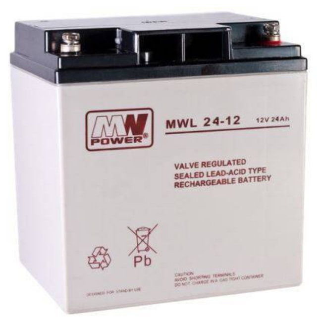 Olověný AGM akumulátor MWL 24‑12 s napětím 12 V a kapacitou 24 Ah je spolehlivý zdroj energie určený především pro záložní napájení ve vysokovýkonných UPS systémech, nouzovém osvětlení, telekomunikačních technologiích a automatizačních aplikacích. Díky bezúdržbové VRLA/AGM konstrukci nabízí dlouhou životnost 10–12 let, stabilní výkon a nízké samovybíjení, což jej činí ideální volbou pro staniční a záložní energetické systémy.