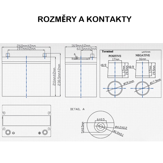 Konektor:Typ 1 (plus průměr 19,5, mínus průměr 17,9), PLUS pól vpravo - typ uchycení B00