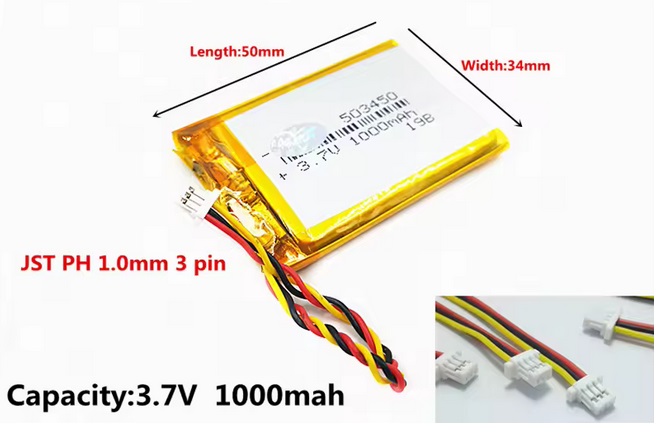 Akumulátor lipo Náhradní polymerová Li-ion baterie 503450 JST PH 1.0mm 3 pin 3.7V, 1000mAh