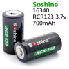 Nabíjecí baterie SOSHINE Li‑ion RCR16340 3,7V (700mAh, bez ochrany)SOSHINE dobíjecí Li‑ion baterie RCR16340 3,7V |
