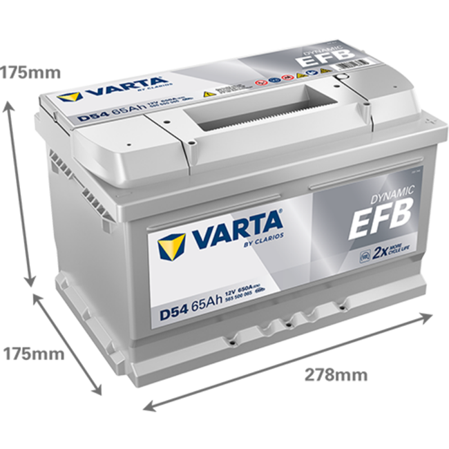 VARTA DYNAMIC EFB D54 12V 65Ah 650A – Bezúdržbová EFB startovací baterie pro systémy Start‑Stop (565 500 065)