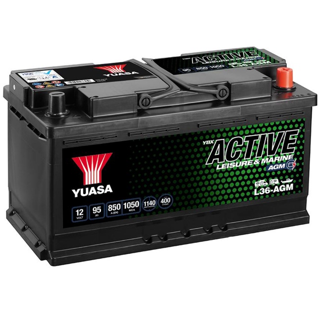YUASA L36-AGM YBX Active Leisure 12V 95Ah 850A (EN) – Bezúdržbová AGM baterie pro karavany, lodě a volnočasová vozidla