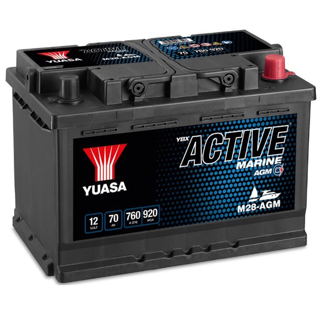 YUASA M28-AGM YBX Active Marine 12V 70Ah 760A (EN) – Bezúdržbová AGM baterie pro lodě, čluny a námořní aplikace