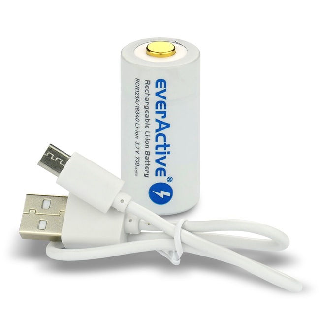 Baterie EVERACTIVE 16340 3,7V (700 mAh, micro USB, s ochranou)