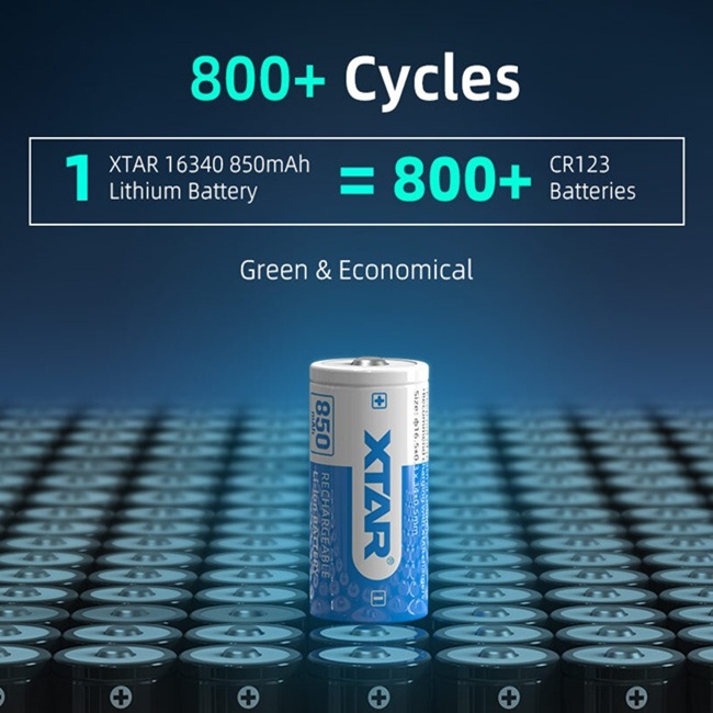 Xtar 16340/R‑CR123 – Dobíjecí Li‑ion baterie 3,7 V (850 mAh, s ochranou)