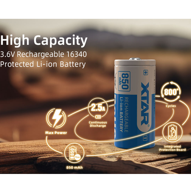 Baterie XTAR Li‑ion 16340/R-CR123 3,7V (850 mAh, s ochranou)