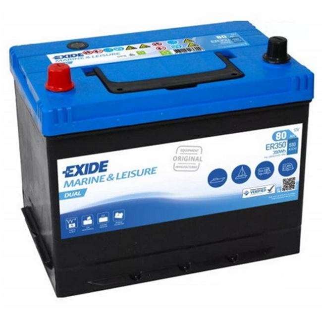 EXIDE DUAL 12V 80Ah 510A ER350 – Duální baterie pro lodě, karavany a rekreační plavidla