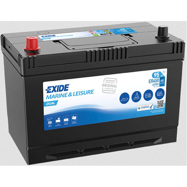EXIDE DUAL 12V 95Ah 650A ER450 – Duální baterie pro lodě, karavany a rekreační plavidla