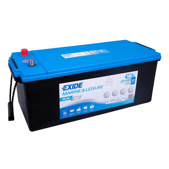 EXIDE DUAL AGM 12V 180Ah 900A EP1500 – Duální AGM baterie pro lodě, karavany a obytné vozy
