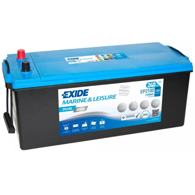 EXIDE DUAL AGM 12V 240Ah 1200A EP2100 – Nejvýkonnější duální AGM baterie pro lodě, karavany a obytné vozy