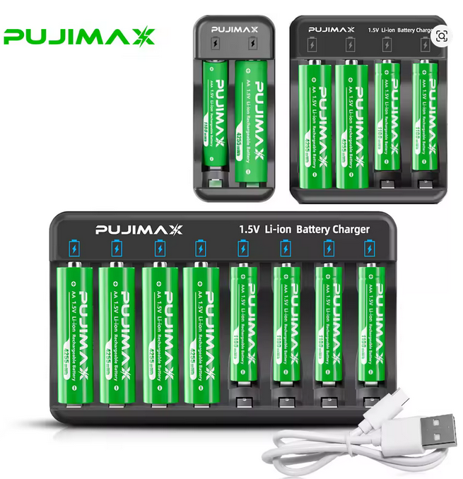 JIMAX Nabíječka s bateriemi AA/AAA 1.5V Li-ion – 4255mWh / 1100mWh