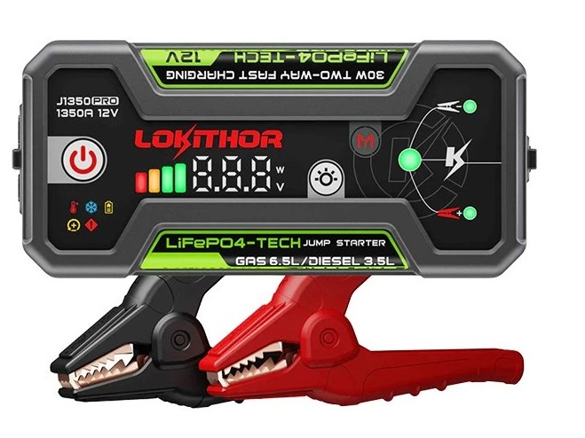 Lokithor J1350 PRO je multifunkční automobilový startovací zdroj se startovacím proudem až 1350A určený ke startování 12V vozidel (až 6.5-litrový benzínový motor nebo 3.5-litrový dieselový motor) během okamžiku. Kompaktní design kombinuje s tímto malým snadno přenosným boosterem i powerbanku podporující rychlé nabíjení 30W a svítilnu. To vše s velmi nízkou hmotností díky vnitřní LiFePO4 baterii. Jedná se tak o skvělého pomocníka, kterého oceníte nejen na cestách. Malé rozměry vám umožní přístroj snadno uschovat do auta. Třeba v zimě na horách se už nemusíte bát, že byste kvůli oslabené autobaterii nenastartovali.