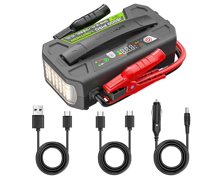 Lokithor J5000 PRO je multifunkční automobilový startovací zdroj se startovacím proudem až 2500A určený ke startování 12V vozidel (až 12-litrový benzínový motor nebo 10-litrový dieselový motor) během okamžiku. Kompaktní design kombinuje s tímto malým snadno přenosným boosterem i powerbanku podporující ultrarychlé nabíjení 100W a výkonnou svítilnu. To vše s nízkou hmotností díky vnitřní LiFePO4 baterii. Jedná se tak o skvělého pomocníka, kterého oceníte nejen na cestách. Malé rozměry vám umožní uschovat přístroj snadno do auta. Třeba v zimě na horách se už nemusíte bát, že byste kvůli oslabené autobaterii nenastartovali.