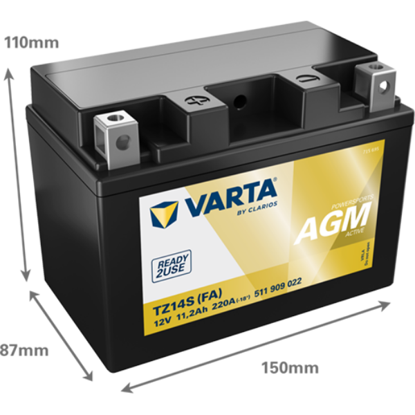 VARTA Powersports AGM Active TZ14S (FA) 12V 11Ah 220A – Bezúdržbová AGM startovací baterie pro motocykly, čtyřkolky a skútry (511 909 022)