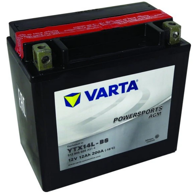 VARTA Powersports AGM TX14L-BS 12V 12Ah 200A – Bezúdržbová AGM startovací baterie pro motocykly, čtyřkolky a skútry (512 905 020)