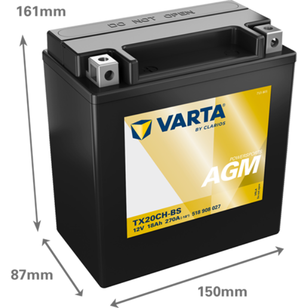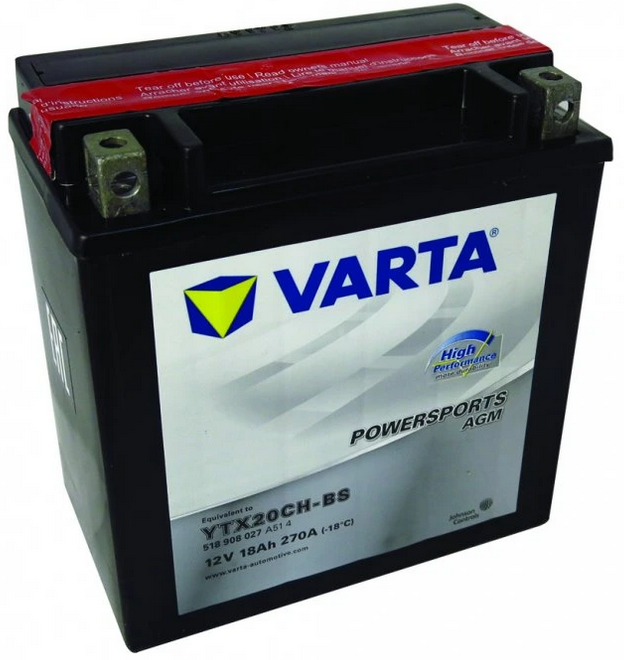 VARTA Powersports AGM TX20CH-BS 12V 18Ah 270A – Bezúdržbová AGM startovací baterie pro motocykly, čtyřkolky a skútry (518 908 027)