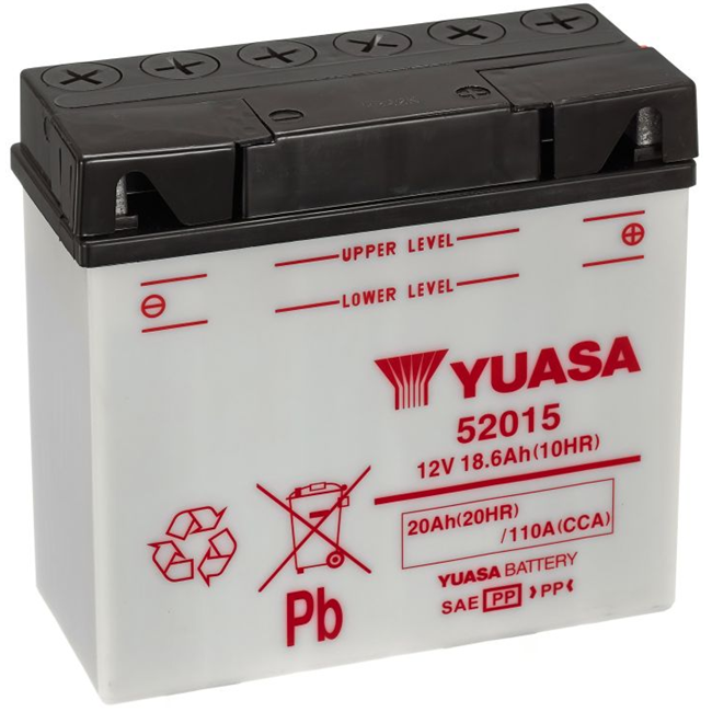 YUASA 52015 12 V 20 Ah 110 A – Zaplavená olověná baterie s údržbou elektrolytu