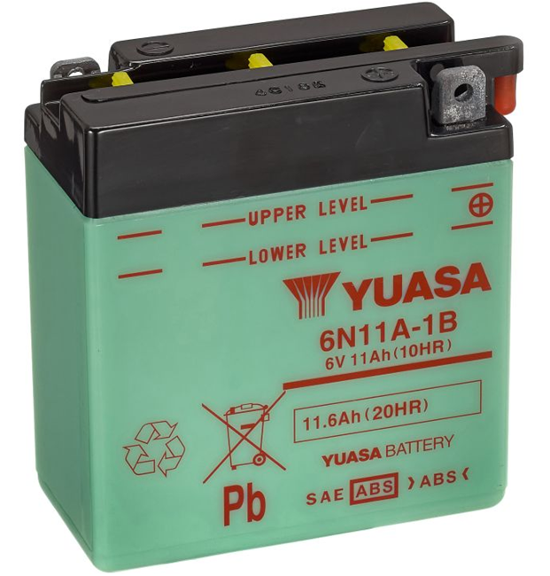 YUASA 6N11A-1B 6 V 11,6 Ah – Zaplavená olověná baterie s údržbou elektrolytu
