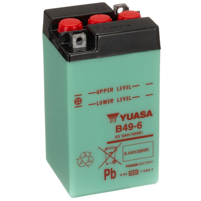 YUASA B49-6 6 V 8,4 Ah – Zaplavená olověná baterie s údržbou elektrolytu