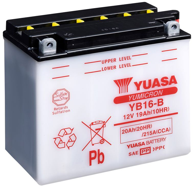 Zaplavená motobaterie Yuasa YB16-B s kapalným elektrolytem a technologií YuMicron zajišťuje stabilní provoz, nízké samovybíjení a spolehlivý start i v náročných podmínkách. Díky více tenkým deskám nabízí vysoký startovací výkon, výbornou odolnost proti vibracím a dlouhou životnost. Vhodná pro touringové motocykly, čtyřkolky, sněžné i vodní skútry.