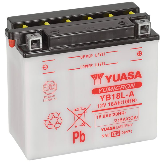 Zaplavená motobaterie Yuasa YB18L-A s kapalným elektrolytem a technologií YuMicron zajišťuje stabilní provoz, nízké samovybíjení a spolehlivý start i v náročných podmínkách. Díky více tenkým deskám nabízí vysoký startovací výkon, výbornou odolnost proti vibracím a dlouhou životnost. Vhodná pro touringové motocykly, čtyřkolky, sněžné i vodní skútry.