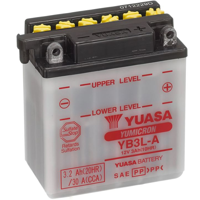 YUASA YB3L-A z řady YuMicron® Conventional je odolná kompaktní zaplavená (wet) baterie určená pro menší motocykly, skútry, mopedy, čtyřkolky a další lehké stroje. Konstrukce s více tenkými deskami poskytuje jistý startovací výkon i při malém objemu baterie, zatímco nízké samovybíjení zajišťuje stabilní provoz při každodenním i sezónním používání.
