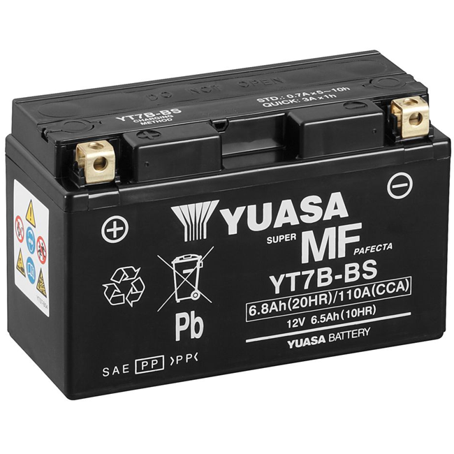 Motobaterie Yuasa YT7B‑BS z řady YTX®, YT & YTB Maintenance Free AGM je spolehlivé řešení pro motocykly, skútry, čtyřkolky, zahradní techniku a další lehké powersport stroje. Díky technologii AGM (Absorbent Glass Mat) nabízí vysoký startovací výkon, odolnost proti vibracím a dlouhou životnost. Elektrolyt je pevně vázaný ve skelném rounu, takže baterie neobsahuje volnou kyselinu a po aktivaci nevyžaduje žádnou údržbu.