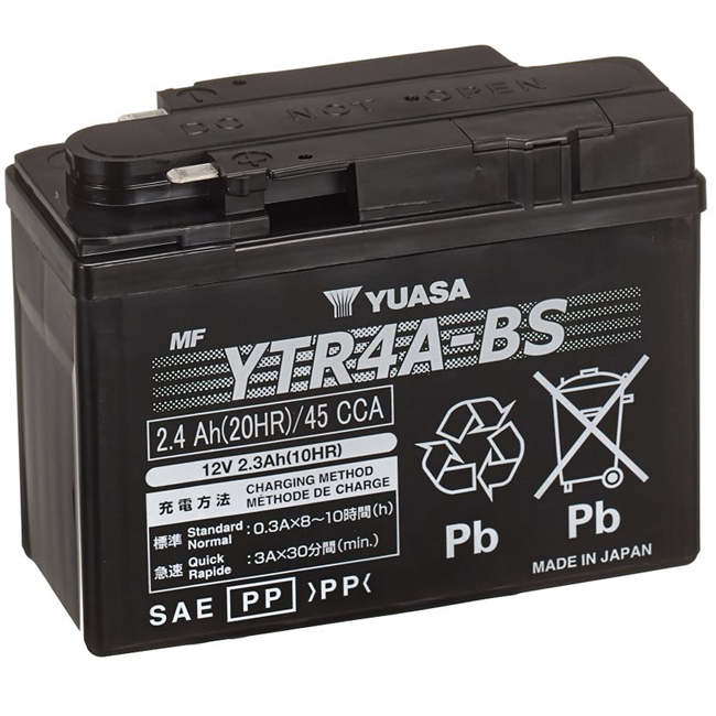 Yuasa YTR4A‑BS je kompaktní AGM motobaterie navržená pro jistý start, nízkou hmotnost a bezúdržbový provoz menších motocyklů a skútrů. Díky kvalitní konstrukci a spolehlivé technologii je vhodnou volbou pro uživatele, kteří hledají lehkou, bezpečnou a dlouhodobě stabilní baterii pro svůj stroj.