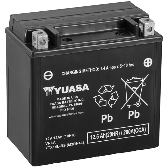 Motobaterie Yuasa YTX14L‑BS z řady YTX®, YT & YTB Maintenance Free AGM představuje spolehlivé řešení pro motocykly, skútry, ATV, zahradní techniku i vodní skútry, které vyžadují stabilní startovací výkon, dlouhou životnost a odolnost v náročných podmínkách. Technologie AGM (Absorbent Glass Mat) zajišťuje bezpečné utěsnění, nulový únik elektrolytu a minimální nároky na údržbu. Po aktivaci je baterie zcela bezúdržbová – elektrolyt je vázaný ve skelném rounu a není třeba doplňovat vodu.