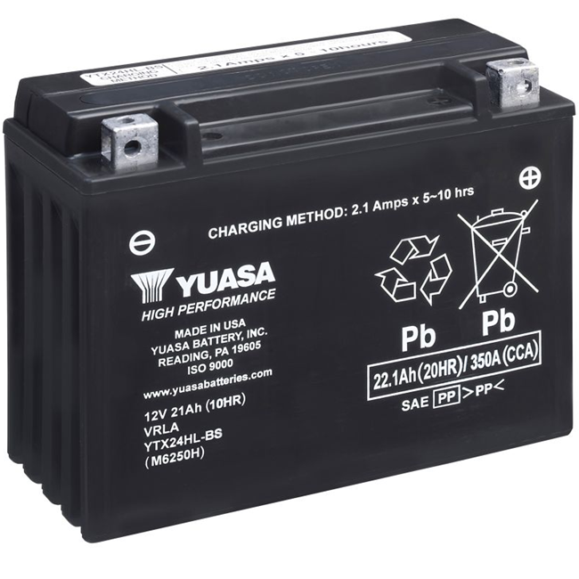 Motobaterie Yuasa YTX24HL‑BS z řady YTX & YIX® High Performance Maintenance Free AGM je špičková 12V AGM VRLA baterie navržená pro maximální startovací výkon, dlouhou životnost a vysokou odolnost v extrémních podmínkách. Tato výkonná řada využívá zvětšený počet desek a speciální konstrukci článků, která zvyšuje startovací proud až o 30 % oproti standardním AGM bateriím. Díky tomu poskytuje jistý start i u velkoobjemových motorů, strojů s vysokou kompresí a v nízkých teplotách.