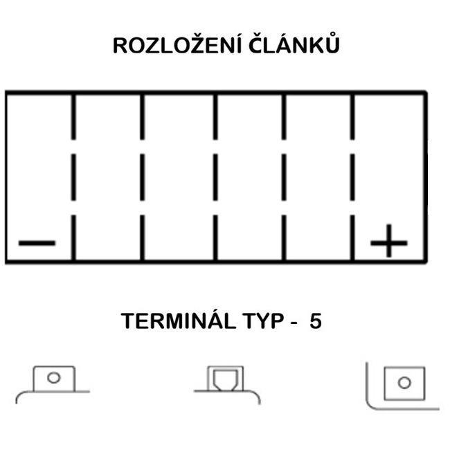 Napětí: 12 V | Kapacita: 5,3 Ah | Startovací proud: 90 A (EN)