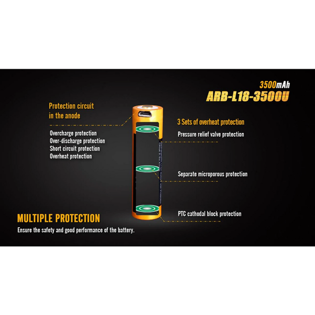 FENIX 18650 ARB-L18-3500U – Dobíjecí Li‑ion baterie 3,7 V (3500mAh, micro USB, s ochranou)
