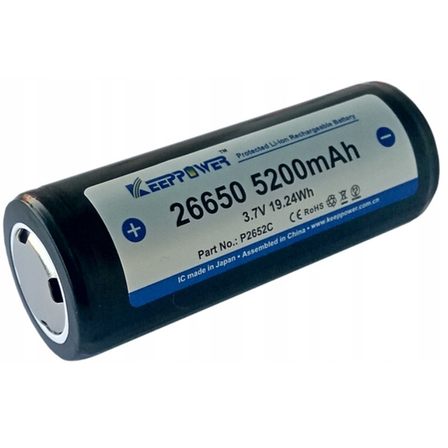 KEEPPOWER 26650 P2652C – Dobíjecí Li‑ion baterie 3,7 V (5200 mAh, Flat-top, s ochranou)