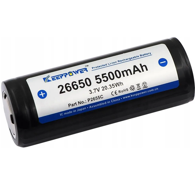 Výkonný Li‑ion akumulátor Keeppower ICR26650 s kapacitou 5500 mAh je určen pro svítilny, elektronické nástroje, přenosná zařízení a další aplikace vyžadující vysoký proudový odběr až 10 A. Stabilní napětí 3,7 V, vysoká energetická hustota a kvalitní ochranná elektronika zajišťují bezpečný provoz i při náročném použití.