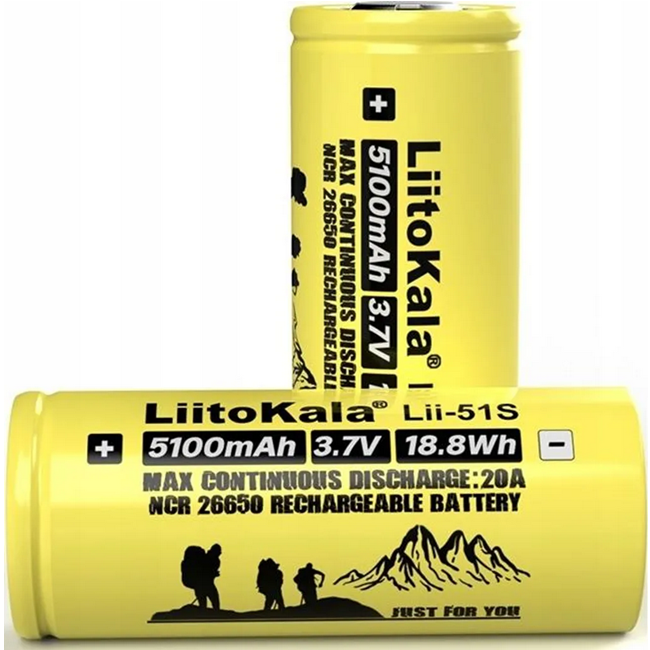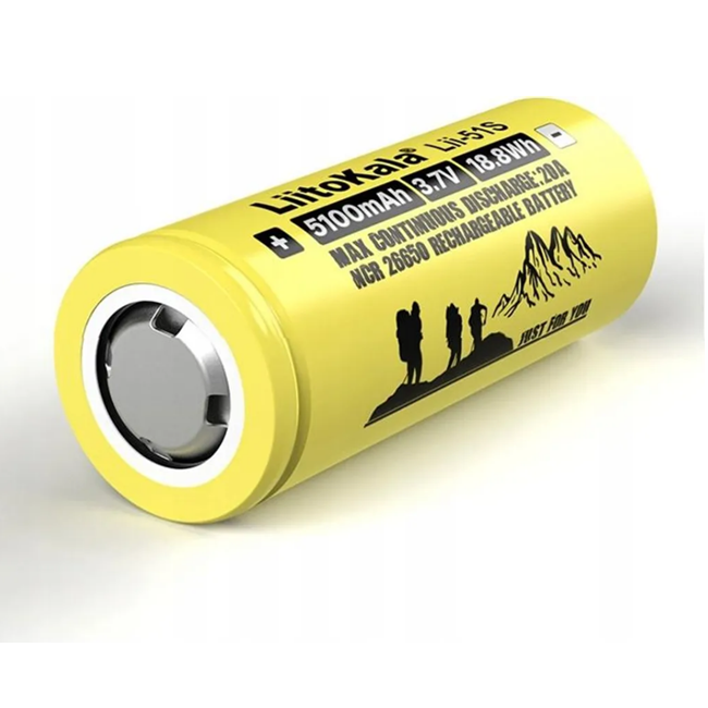 Výkonný Li‑ion akumulátor Liitokala 26650 Lii‑51S s kapacitou 5100 mAh je spolehlivým zdrojem energie pro výkonné svítilny, elektronické nástroje, powerbanky, přenosná zařízení a další elektroniku vyžadující dlouhou výdrž a stabilní proudový odběr. Stabilní napětí 3,6–3,75 V, vysoká energetická hustota a kvalitní konstrukce článku zajišťují konzistentní výkon i při vyšším zatížení.