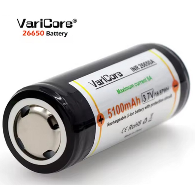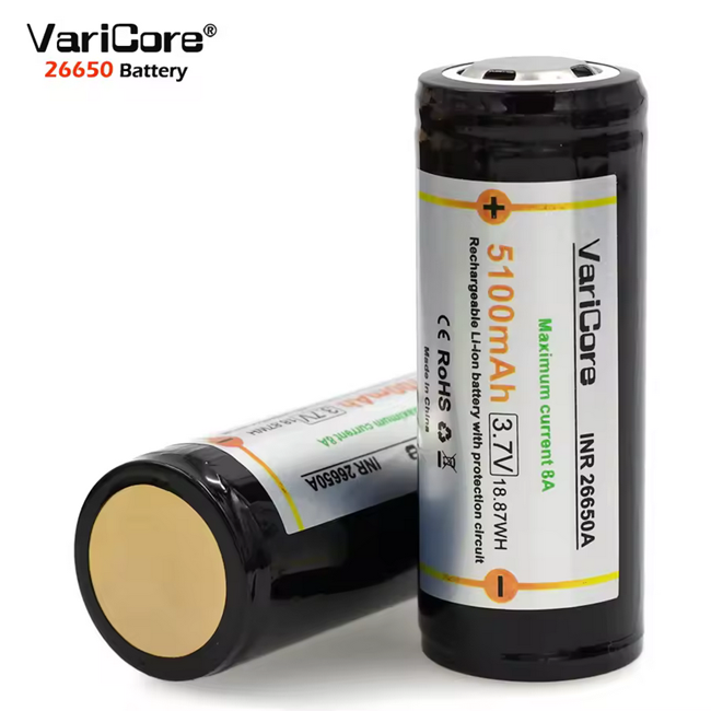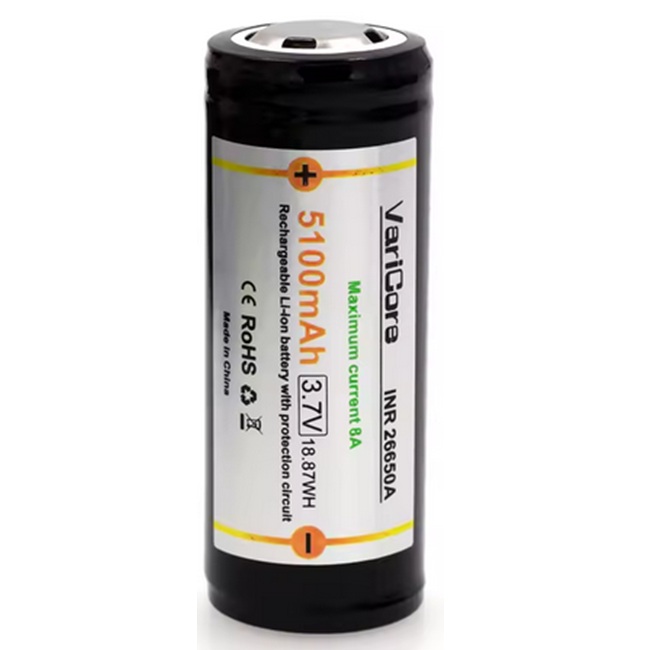 VARICORE INR26650A – Dobíjecí Li‑ion baterie 3,7 V (5100 mAh, Flat-top, s ochranou)