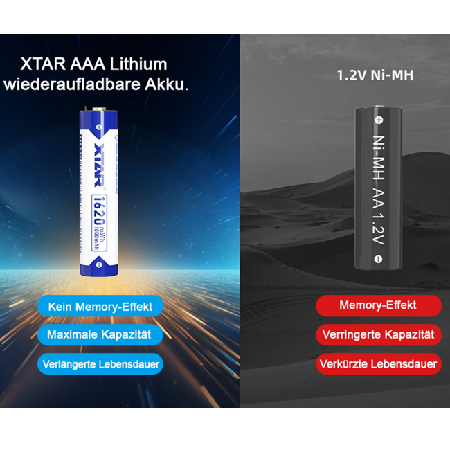 Dobíjecí Li‑ion akumulátor XTAR AAA 1,5 V je moderní článek s integrovanou elektronikou, která zajišťuje stabilní výstupní napětí 1,5 V po celou dobu vybíjení. Díky skutečné energii 1620 mWh, typické kapacitě 1000 mAh a dlouhé životnosti až 1000 nabíjecích cyklů představuje ideální náhradu za jednorázové alkalické baterie i klasické NiMH články.