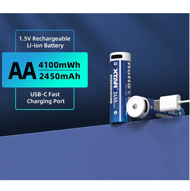 XTAR R6 – Dobíjecí Li‑ion baterie AA 1,5 V (2450 mAh, USB‑C, s regulací napětí)