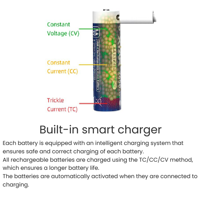 Typ: AA USB‑C Lion | Napětí: 1,5 V | Kapacita: 2450 mAh