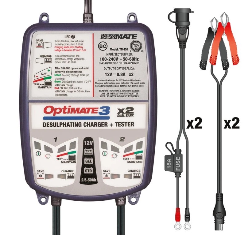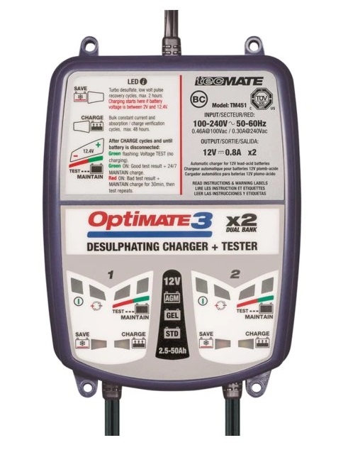 Dejte svým bateriím dokonalou péči. OPTIMATE 3 x 2 Dual Bank (TM450) je unikátní plně automatická nabíječka, která v jednom kompaktním těle ukrývá dvě zcela samostatné a oddělené nabíječky. Je to ideální a úsporné řešení pro pravidelné dobíjení a údržbu dvou 12V akumulátorů současně.