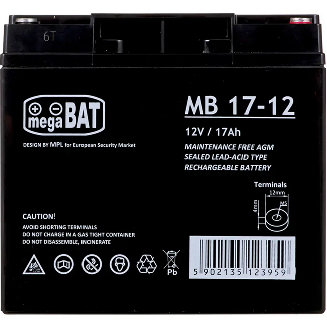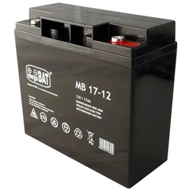 MEGABAT MB 17‑12 – Nabíjecí olověná AGM baterie 12 V (17 Ah, pro záložní systémy / bufferový provoz)