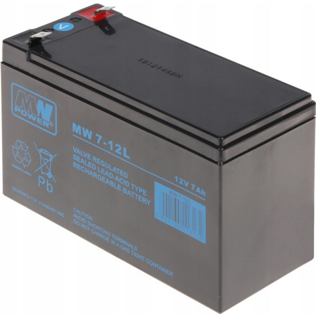 Olověný AGM akumulátor MW Power MW 7‑12L s napětím 12 V a kapacitou 7 Ah je spolehlivý zdroj energie určený pro záložní napájení i cyklický provoz. Díky bezúdržbové AGM technologii poskytuje stabilní výkon, nízké samovybíjení a dlouhou životnost, což z něj činí ideální volbu pro širokou škálu zařízení – od UPS a automatizačních systémů až po pokladní terminály, přenosnou elektroniku či menší motory a zařízení pracující v cyklickém režimu.