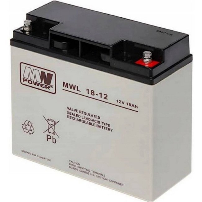 MW POWER MWL 18‑12 – Nabíjecí olověná AGM baterie 12 V 18 Ah pro vysokovýkonné UPS