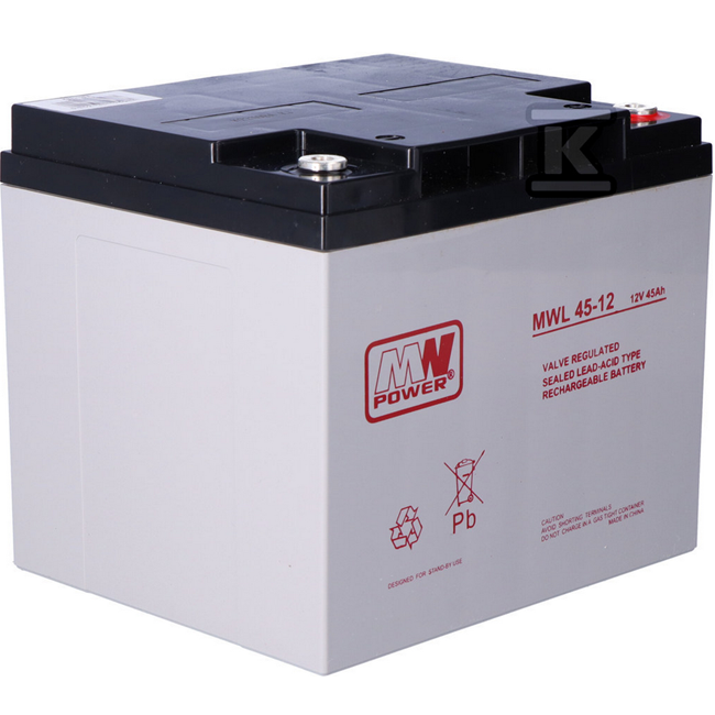 MW POWER MWL 45‑12 – Nabíjecí olověná AGM baterie 12 V 45 Ah pro vysokovýkonné UPS