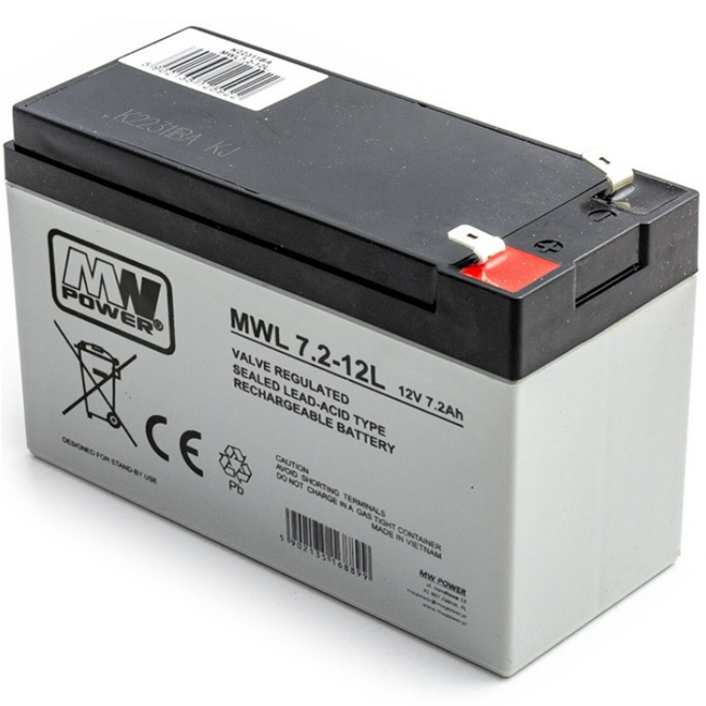MW POWER MWL 7,2‑12L – Nabíjecí olověná AGM baterie 12 V 7,2 Ah pro vysokovýkonné UPS