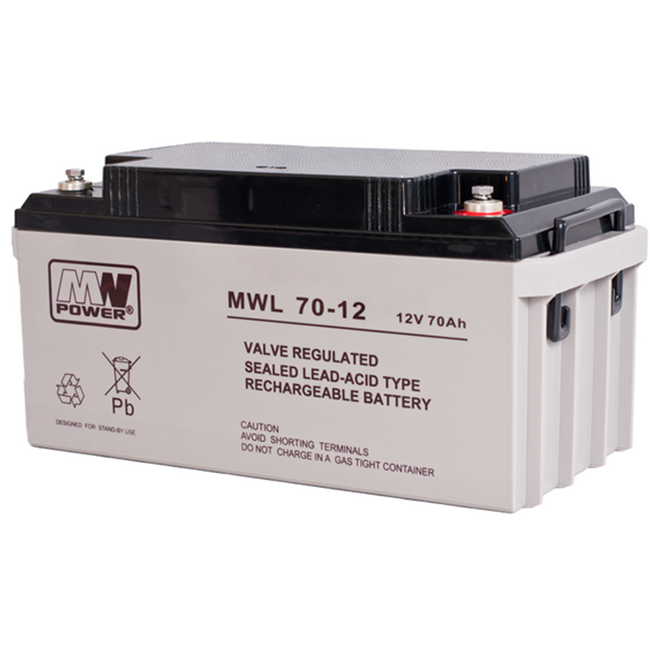 MW POWER MWL 70‑12 – Nabíjecí olověná AGM baterie 12 V 70 Ah pro vysokovýkonné UPS