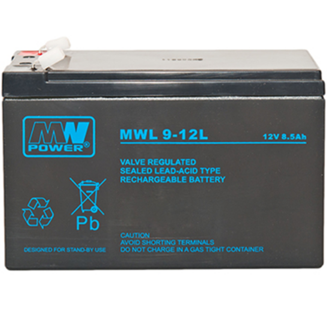 MW POWER MWL 9‑12L – Nabíjecí olověná AGM baterie 12 V 9 Ah pro vysokovýkonné UPS