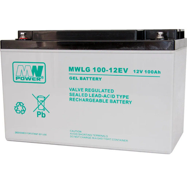 Olověná GEL baterie MW Power MWLG 100‑12EV s napětím 12 V a kapacitou 100 Ah patří do řady MWLG – trakčních VRLA‑GEL akumulátorů, které využívají elektrolyt v gelové formě a separátor PVC‑SiO₂. GEL technologie poskytuje vysokou odolnost vůči hlubokému vybití, stabilní výkon v cyklickém provozu a dlouhou životnost i při častém nabíjení a vybíjení.