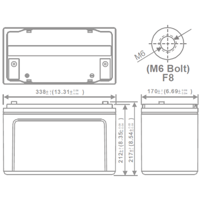 Akumulátor je navržen pro provoz v náročných podmínkách – zvládá teploty od –20 °C do +50 °C, má nízký vnitřní odpor a poskytuje vysoké vybíjecí proudy až 1100 A po dobu 5 s, což umožňuje krátkodobé napájení i energeticky náročných zařízení. Při 50% vybití dosahuje až 600 cyklů, v režimu standby je jeho projektovaná životnost až 12 let. Díky kompaktním rozměrům (338 × 170 × 212/217 mm) a terminálům M6 se snadno integruje do široké škály systémů.