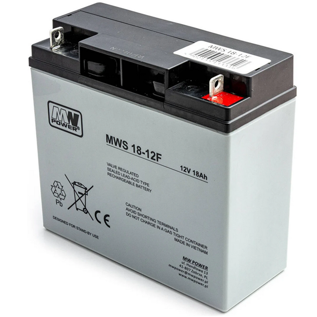 Olověný AGM akumulátor MW Power MWS 18‑12F s napětím 12 V a kapacitou 18 Ah je spolehlivý zdroj energie určený pro záložní napájení i cyklický provoz. Díky bezúdržbové technologii VRLA AGM nabízí stabilní výkon, nízký vnitřní odpor a dlouhou životnost, což z něj činí ideální volbu pro širokou škálu zařízení – od zabezpečovacích ústředen a EPS systémů až po telekomunikační techniku, přenosná zařízení a menší trakční aplikace.